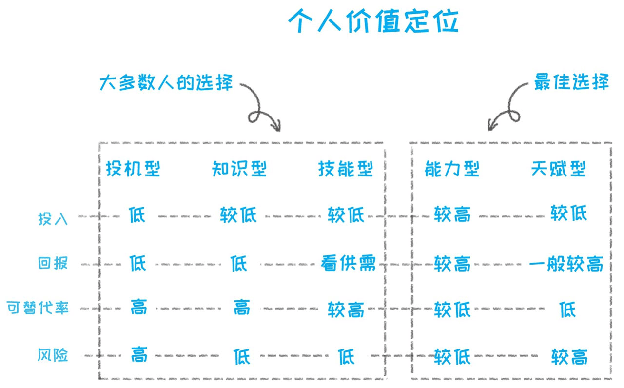 有一点需要说明的是,我们并不是在讨论哪种类型更好,并不是在追求一个唯一正确的答案,只是单纯从个人价值提升的角度。探讨有哪些可选择的方向,并且每个人都有自己的路,你追求快乐,不断提升价值提升,只要不后悔,并没有什么对错,我们探讨的只是大多数普通人的路。