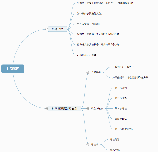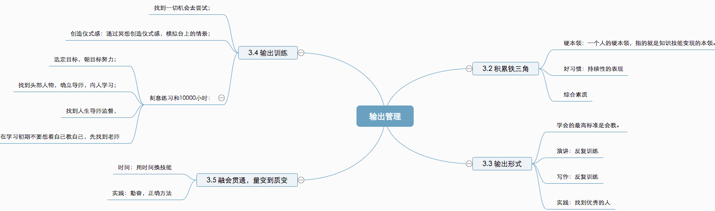 首先把目录给抄一遍,因为任何一本书它的目录写得再烂,它也是一本书的核心的框架,很多时候作者已经告诉你了。然后,绘出一套思维导图,这个过程其实就是内化知识的过程。当你读完书,最好是能够把这本书的主干道路以及相关吸收的知识点画出来。