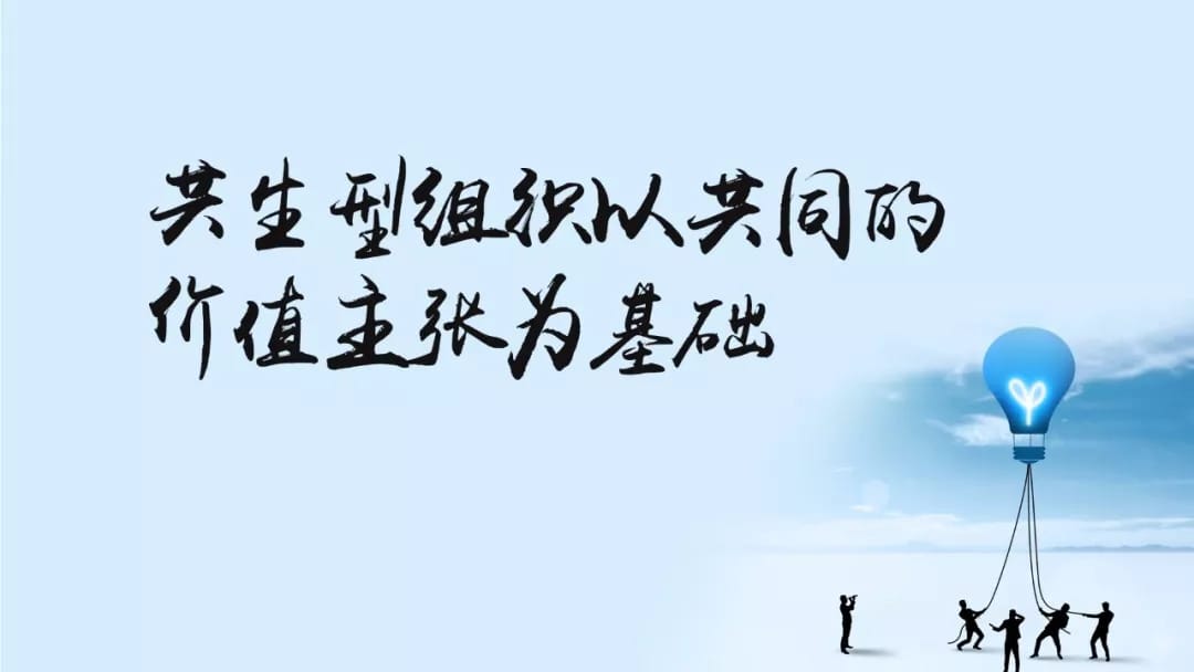 众多成功的商业实践表明,构建命运共同体为组织带来的价值是明显提高的,将顾客的需求与高效的供应体系相连接,利用互联网技术实现合作各方的无缝连接,获得更高效率的问题解决方法。现实的选择导致了一种全新的组织逻辑生成,我们称之为「共生型组织」。