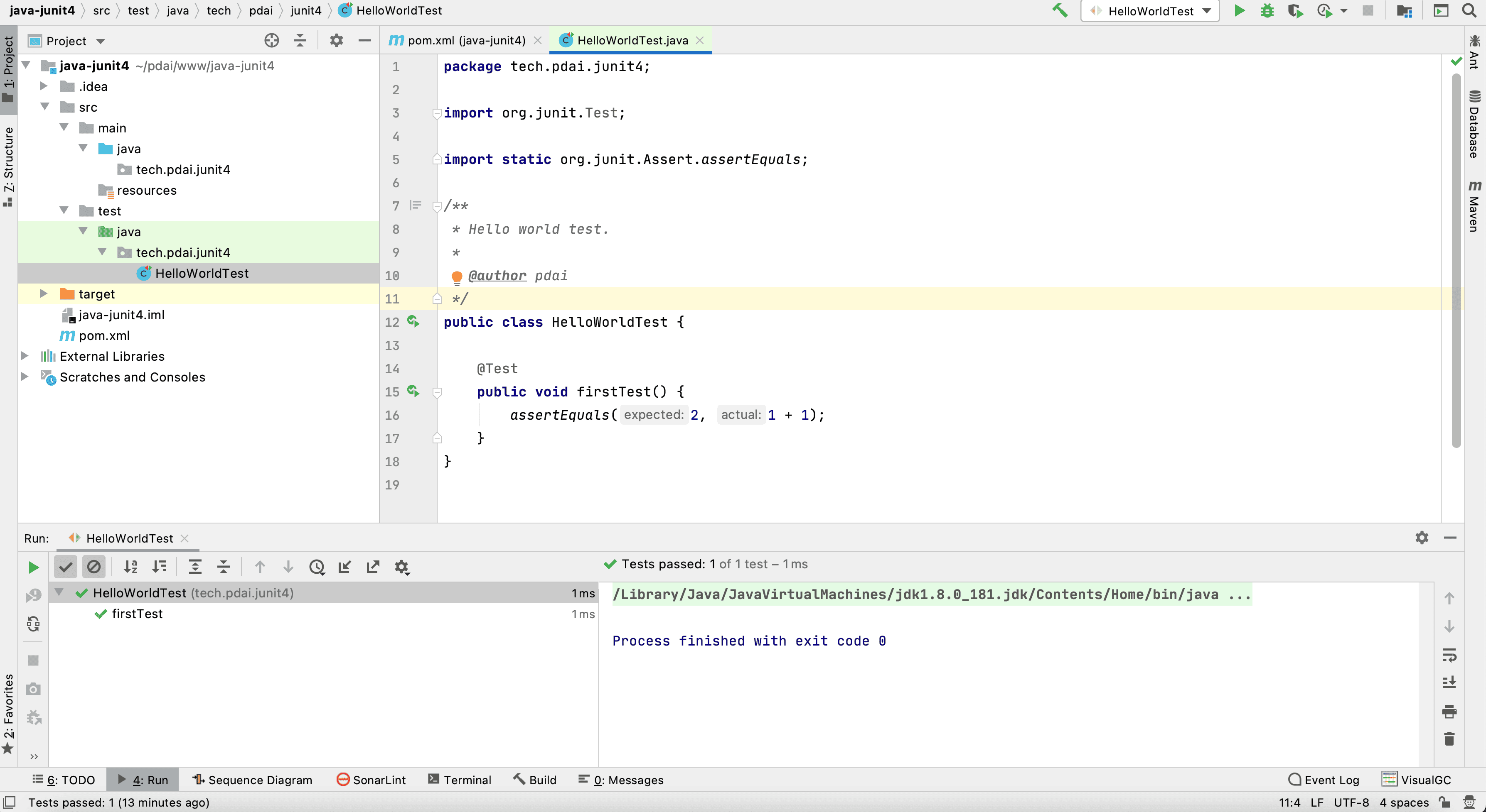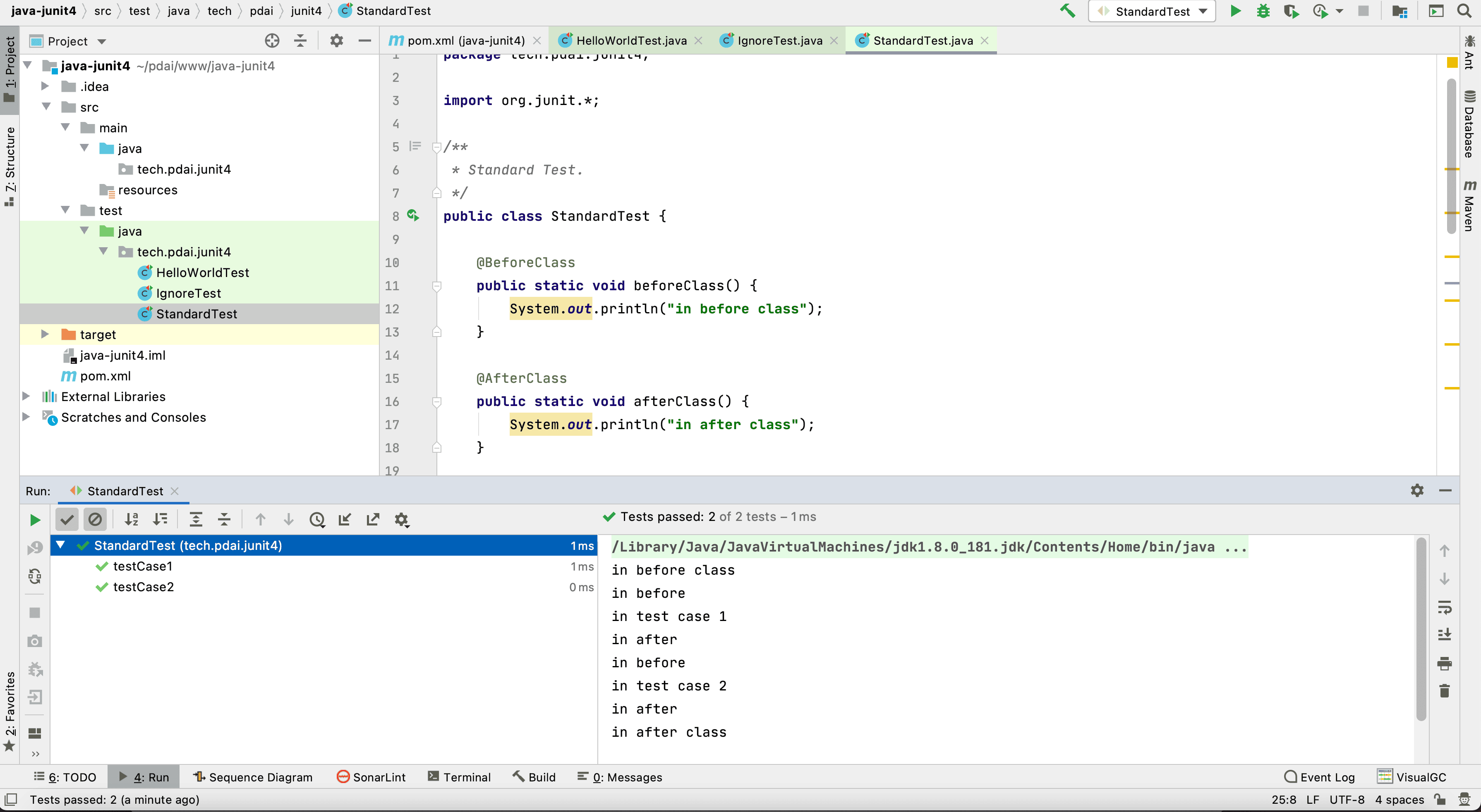 注意:测试方法必须是public void,即公共、无返回数据。可以抛出异常。