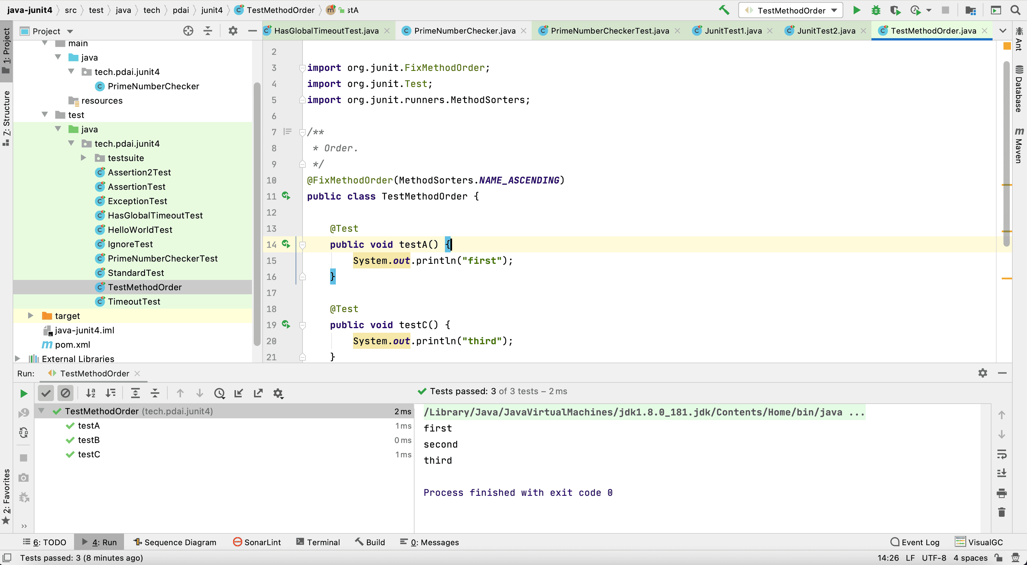 @FixMethodOrder(MethodSorters.NAME_ASCENDING)