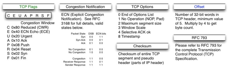 Sequence Number是包的序号,用来解决网络包乱序(reordering)问题。Acknowledgement Number就是ACK——用于确认收到,用来解决不丢包的问题。Window又叫Advertised-Window,也就是著名的滑动窗口(Sliding Window),用于解决流控的。TCP Flag,也就是包的类型,主要是用于操控TCP的状态机的。