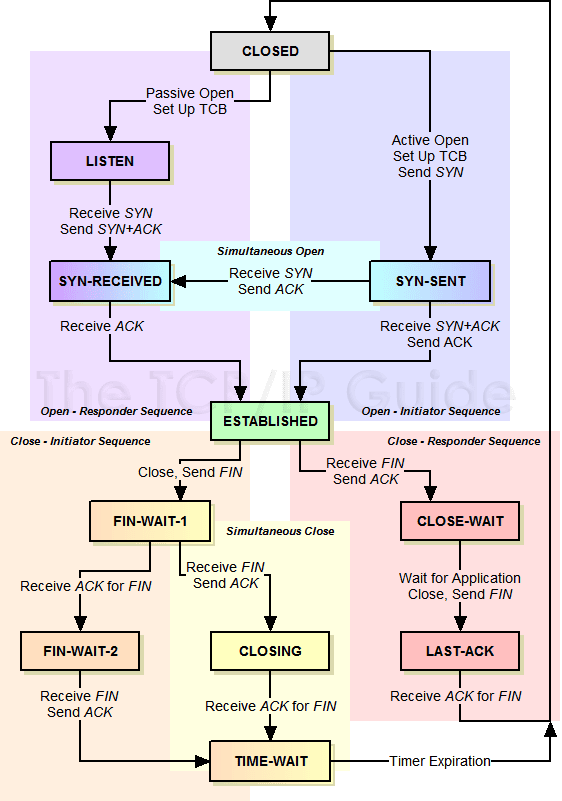 其实,网络上的传输是没有连接的,包括TCP也是一样的。而TCP所谓的“连接”,其实只不过是在通讯的双方维护一个“连接状态”,让它看上去好像有连接一样。所以,TCP的状态变换是非常重要的。