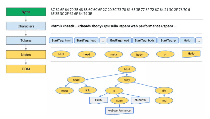 当浏览器接收到服务器响应来的HTML文档后,会自上而下扫描文档,开始解析,遍历文档节点,生成DOM树。