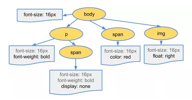 - 浏览器会先从dom树的根节点开始遍历每个可见节点,找到其适配的CSS样式规则并应用。