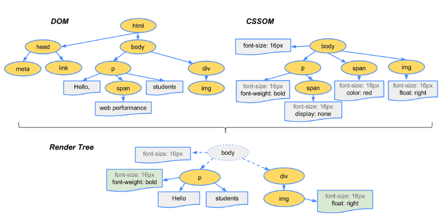 - 将dom树与cssom树结合在一起,这就是渲染树。
