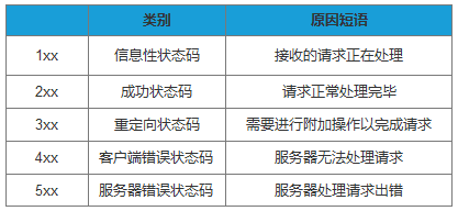 响应结果中会有对应的HTTP状态码,可分为5类: