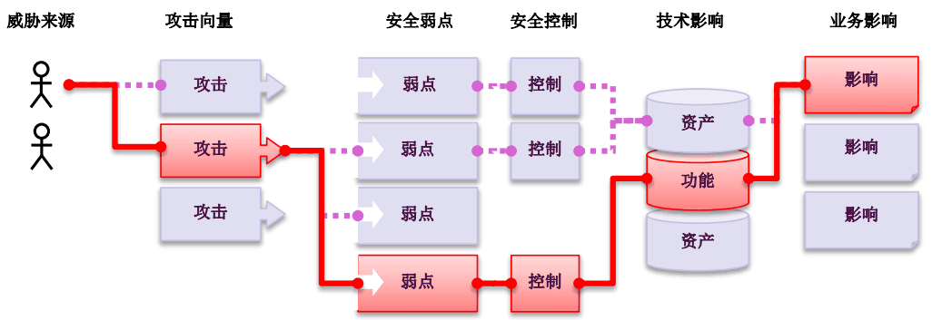 攻击者可以通过应用程序中许多不同的路径方法去危害您的业务或者企业组织。每种路径方法都代表了一种风险,这些风险可能会,也可能不会严重到值得您去关注。