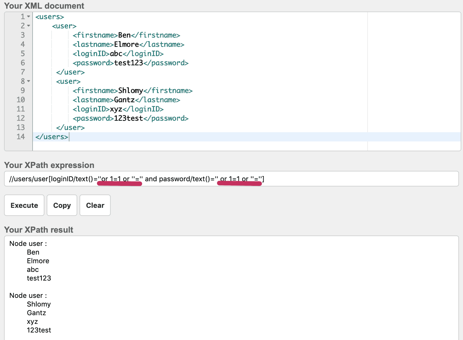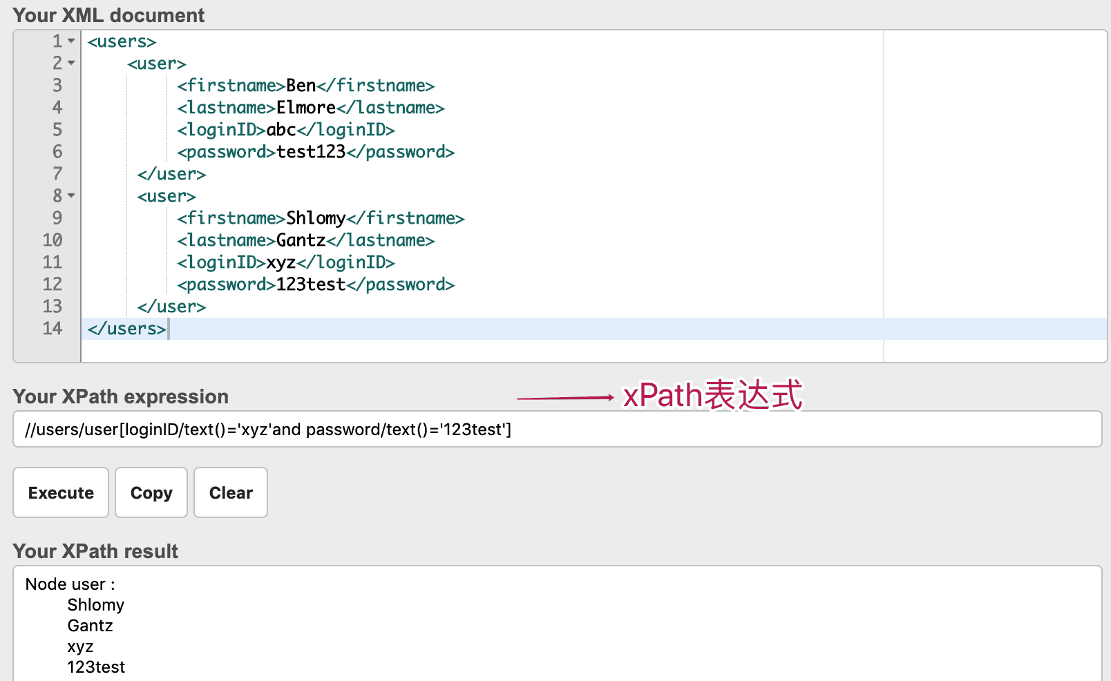 - 参数化XPath查询,将需要构建的XPath查询表达式,以变量的形式表示,变量不是可以执行的脚本。