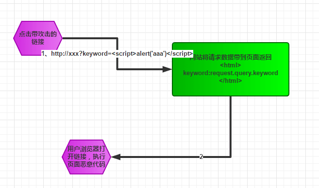 http://xxx?keyword=<script>alert('aaa')</script> - 网站给受害者的返回中包含了来自URL的的恶意文本