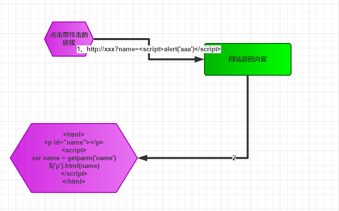 1、用户误点开了带攻击的url : http://xxx?name=<script>alert('aaa')</script>