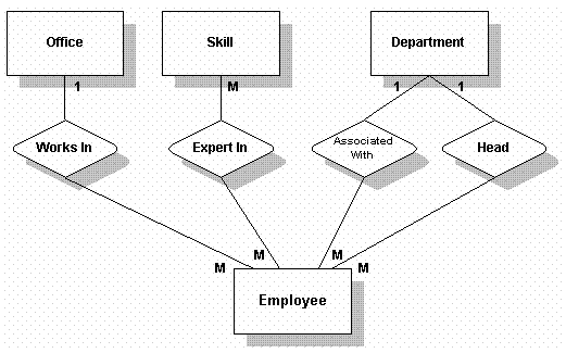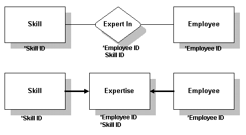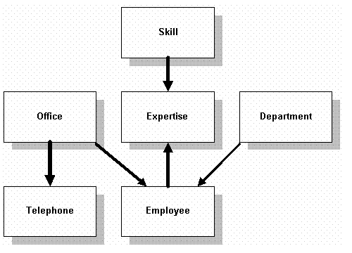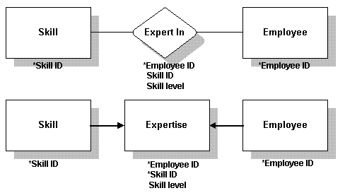 - 确定relationships。分析行为,确定tables之间有何种关系。比如,部门与雇员之间存在一种关系。给这种关系命名。