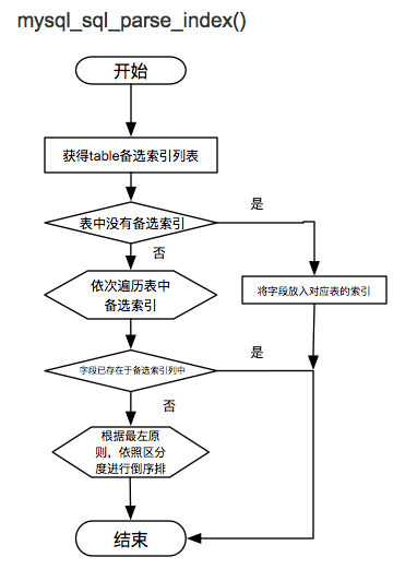 - mysql_sql_parse_index()将条件按照选择度添加到备选索引链表中。