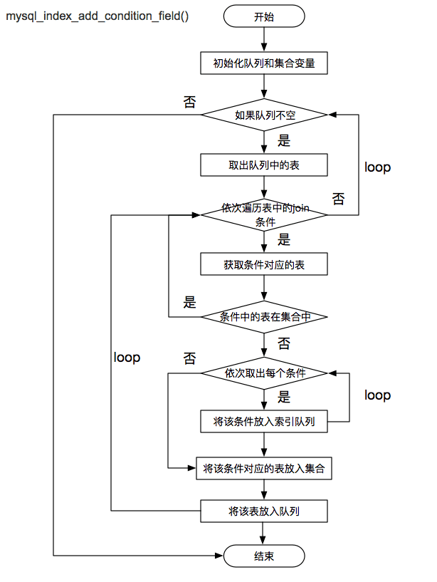 - 该过程涉及的函数主要是:mysql_index_add_condition_field(),流程如下:
