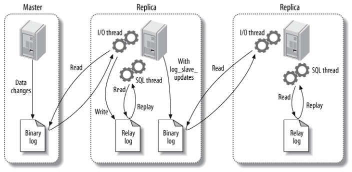 主要涉及三个线程: binlog 线程、I/O 线程和 SQL 线程。