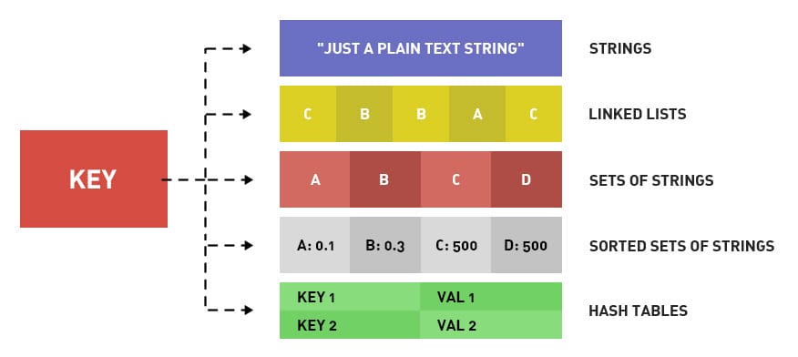 首先对redis来说,所有的key(键)都是字符串。我们在谈基础数据结构时,讨论的是存储值的数据类型,主要包括常见的5种数据类型,分别是:String、List、Set、Zset、Hash。