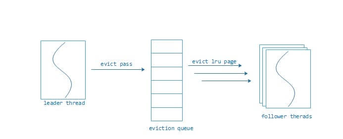 满足这个条件leader线程就会进行evict pass阶段性扫描并填充eivction queue,最后驱使follower线程进行evict page操作。