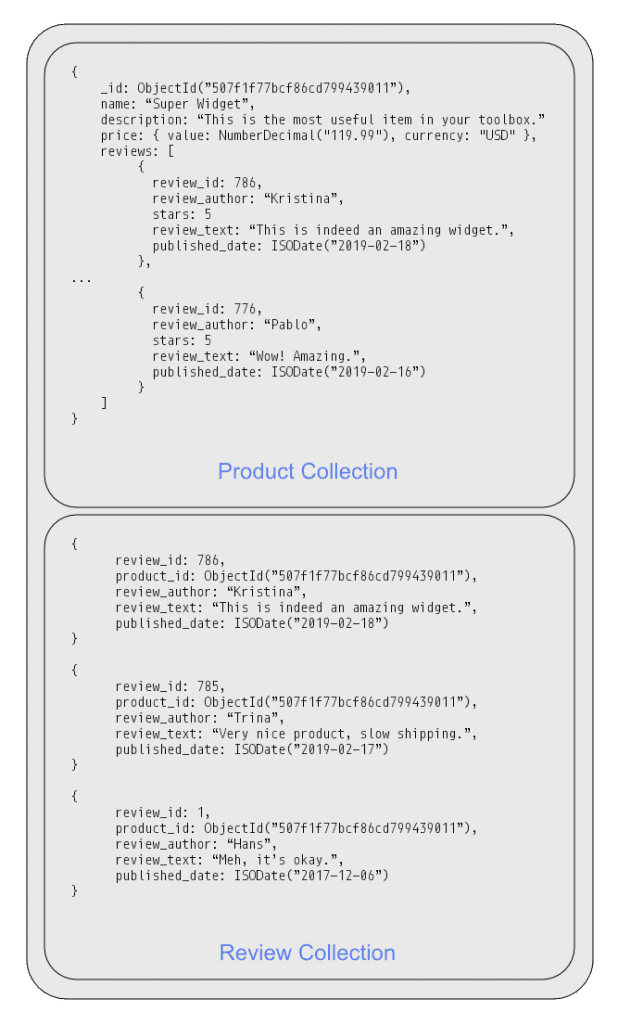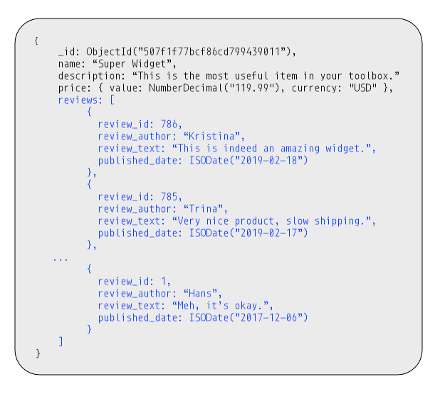 当集合中的所有文档都具有相似但不相同的结构 时,我们将其称为多态模式。如前所述,当我们希望从单个集合中访问(查询)信息时,多态模式非常有用。根据我们要运行的查询将文档分组在一起(而不是将其分散在多个表或集合中)有助于提高性能。