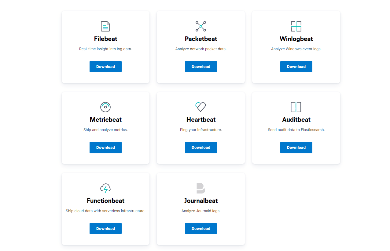 Beats是一个面向轻量型采集器 的平台,这些采集器可以从边缘机器向Logstash、ElasticSearch发送数据,它是由Go语言进行开发的,运行效率方面比较快。从下图中可以看出,不同Beats的套件是针对不同的数据源。