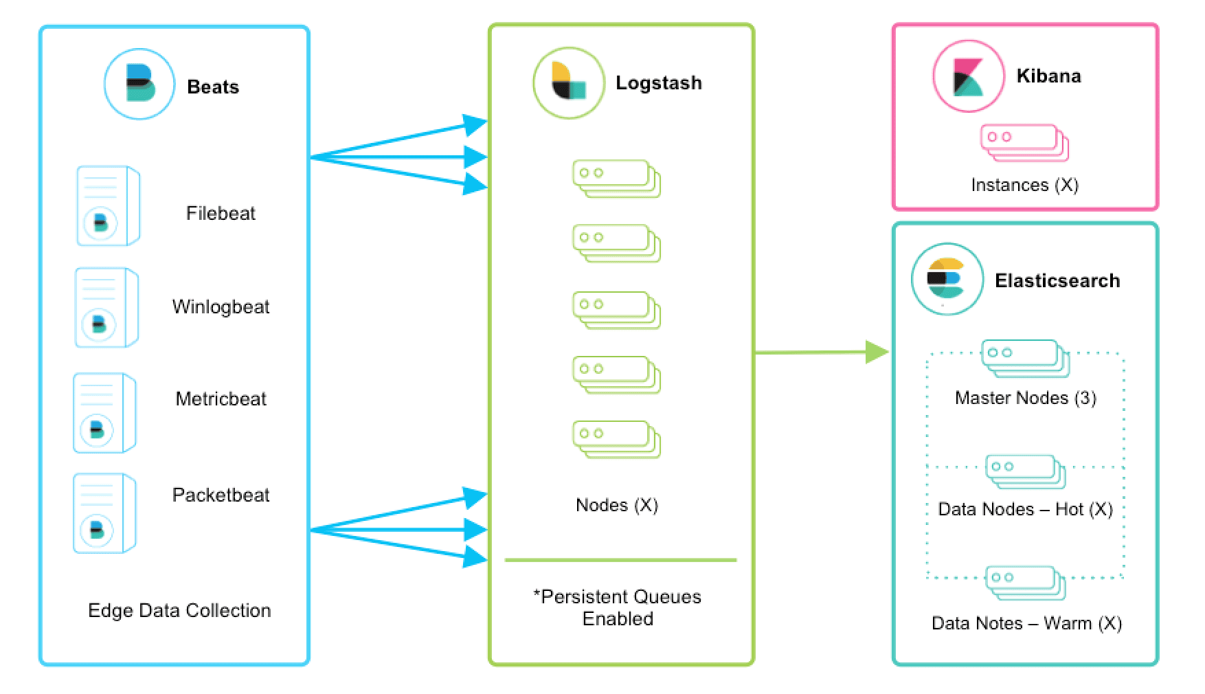 (2)消息持久性与至少一次交付保证:使用beats或Winlogbeat进行日志收集时,可以保证至少一次交付。从Filebeat或Winlogbeat到Logstash以及从Logstash到Elasticsearch的两种通信协议都是同步的,并且支持确认。Logstash持久队列提供跨节点故障的保护。对于Logstash中的磁盘级弹性,确保磁盘冗余非常重要。