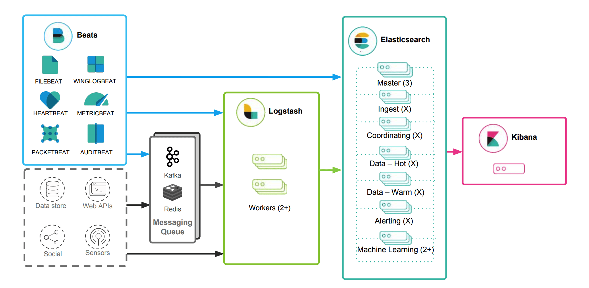 如下是我从官方博客中找到图,这张图展示了ELK生态以及基于ELK的场景(最上方)