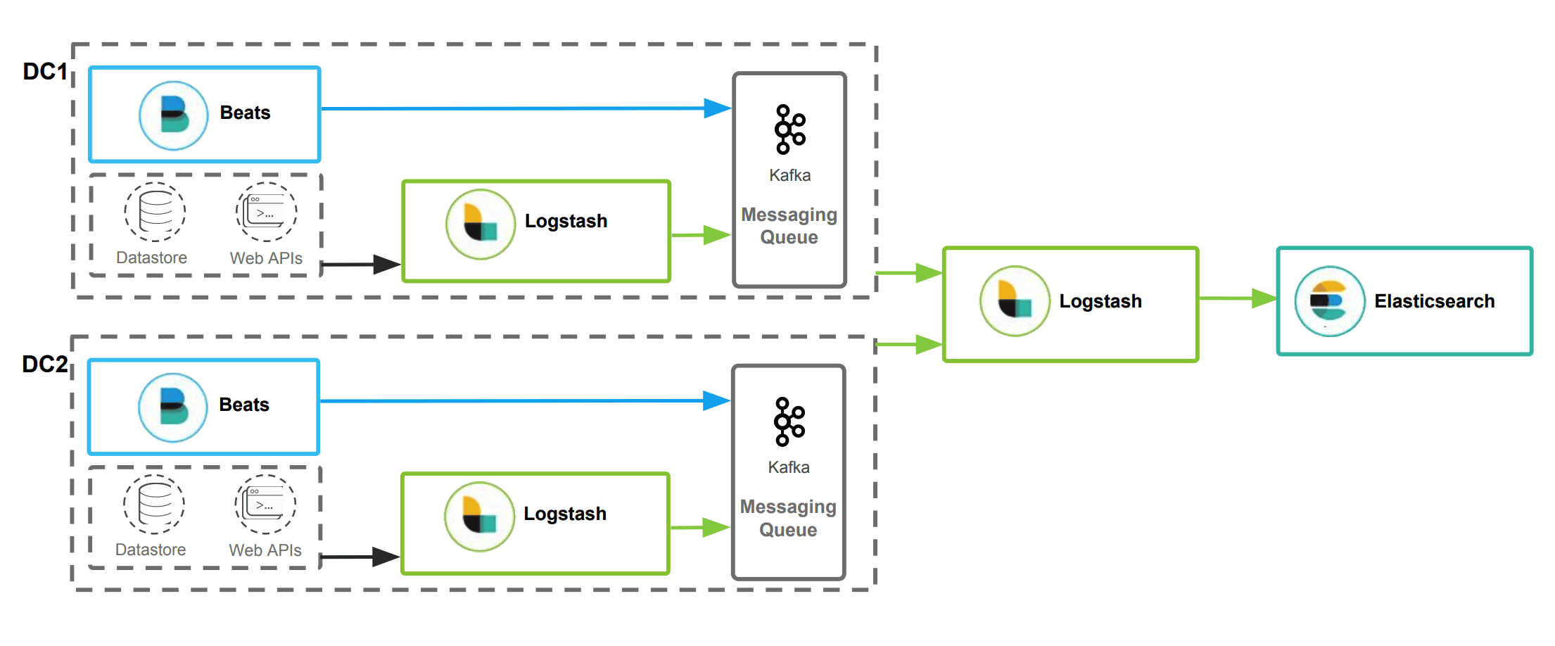 (2)如果有很多台机器需要做日志收集,那么让每台机器都向Elasticsearch持续写入数据,必然会对Elasticsearch造成压力,因此需要对数据进行缓冲,同时,这样的缓冲也可以一定程度的保护数据不丢失;