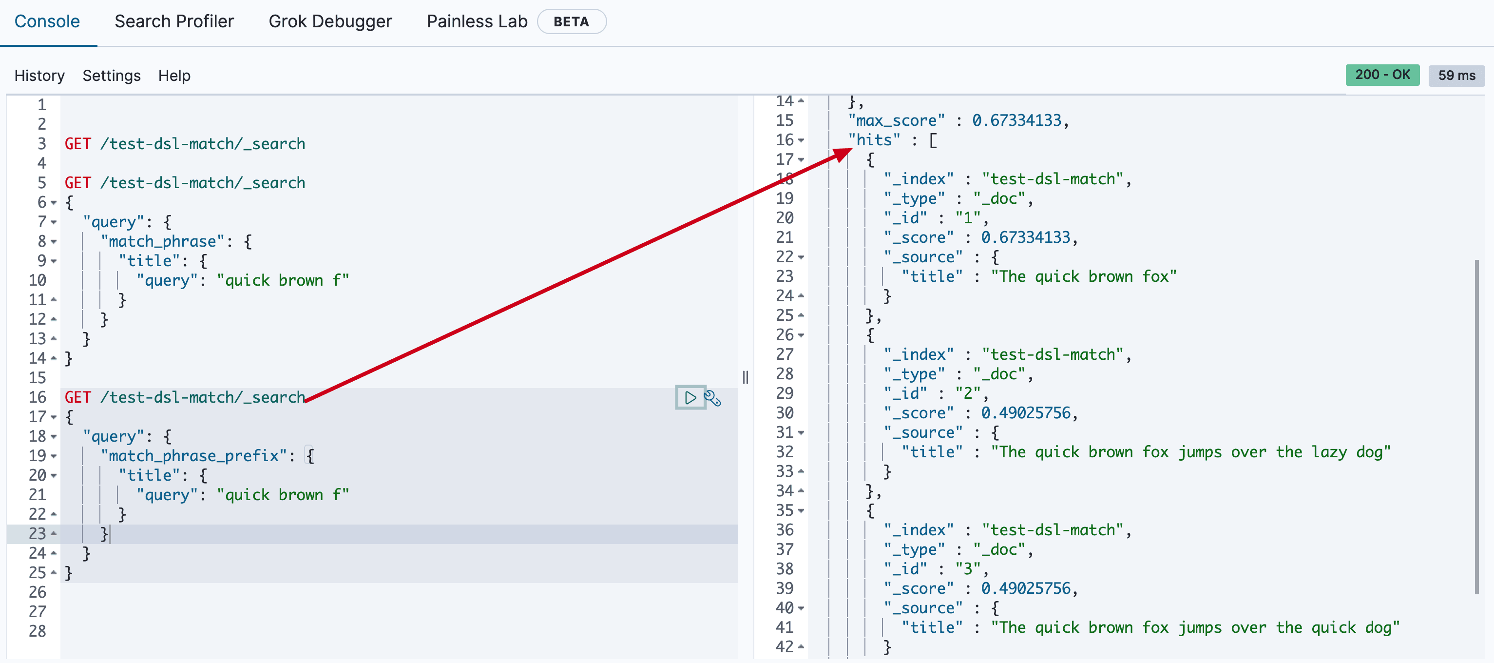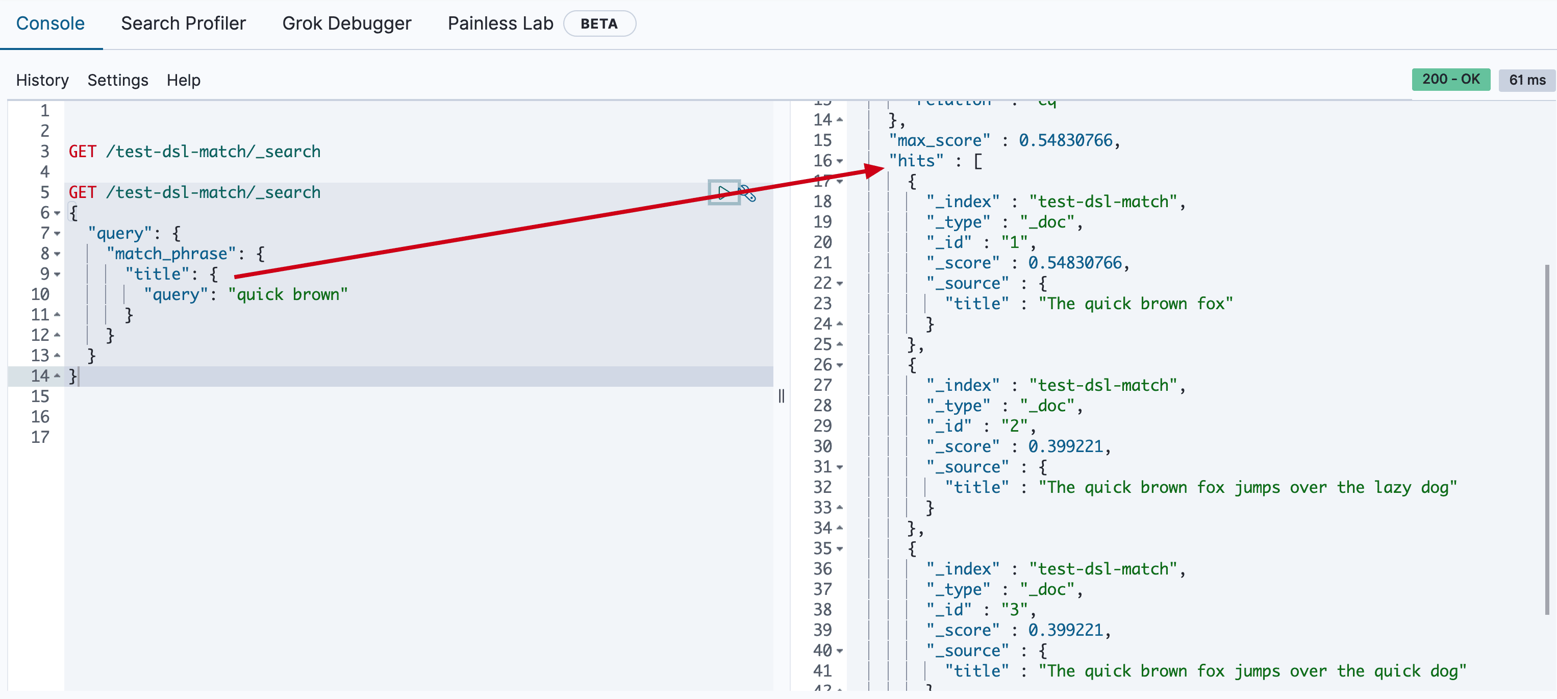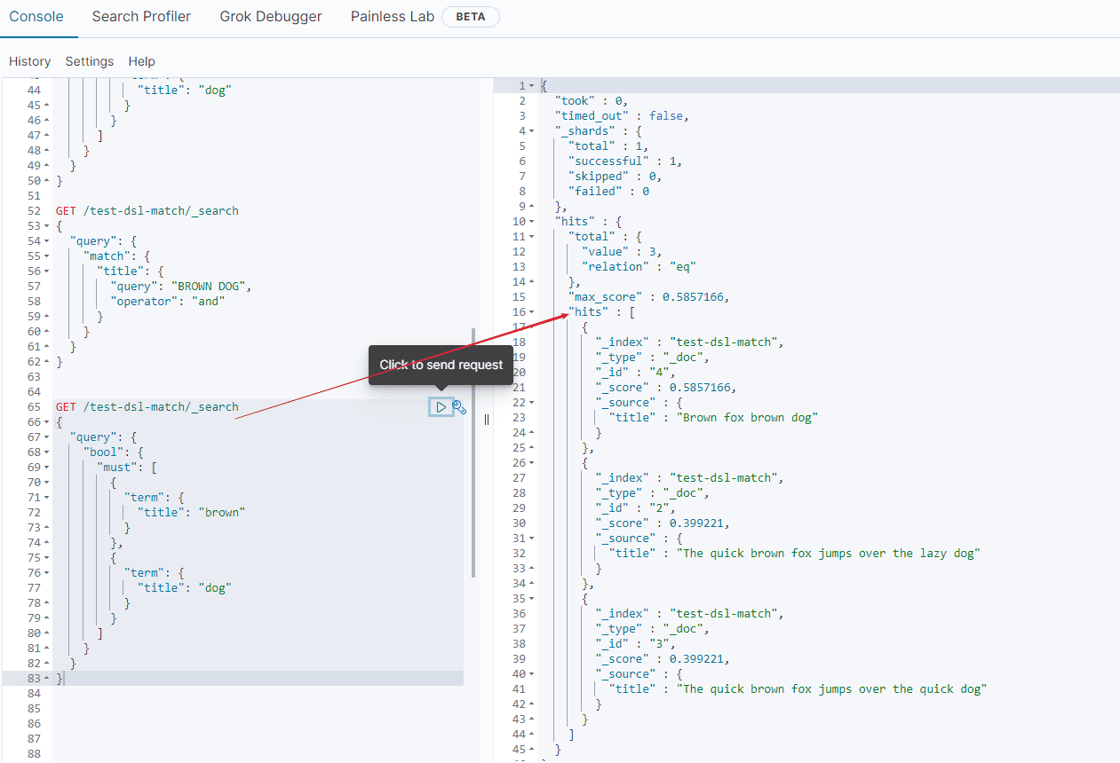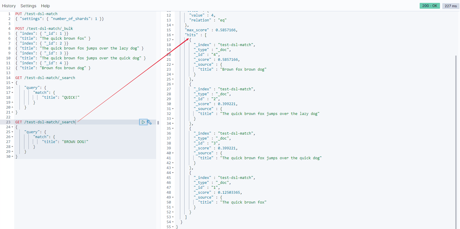 { "title": "Brown fox brown dog" }- 查询数据