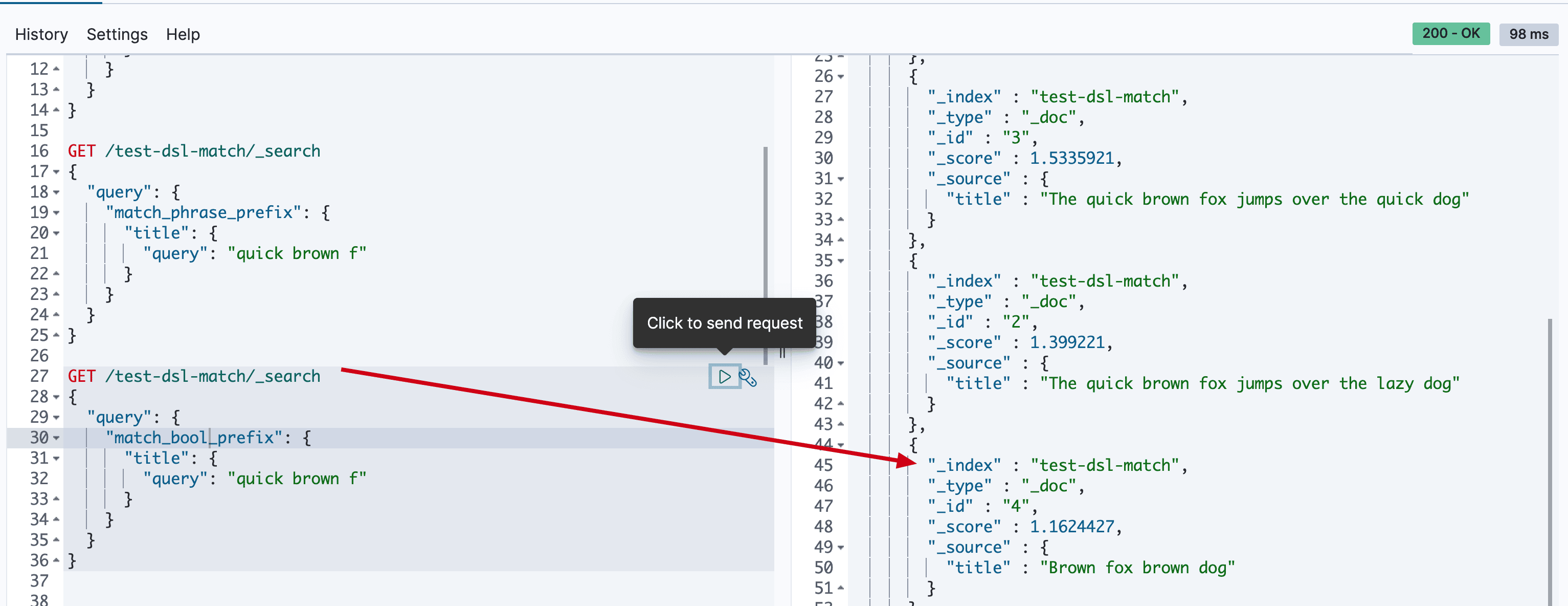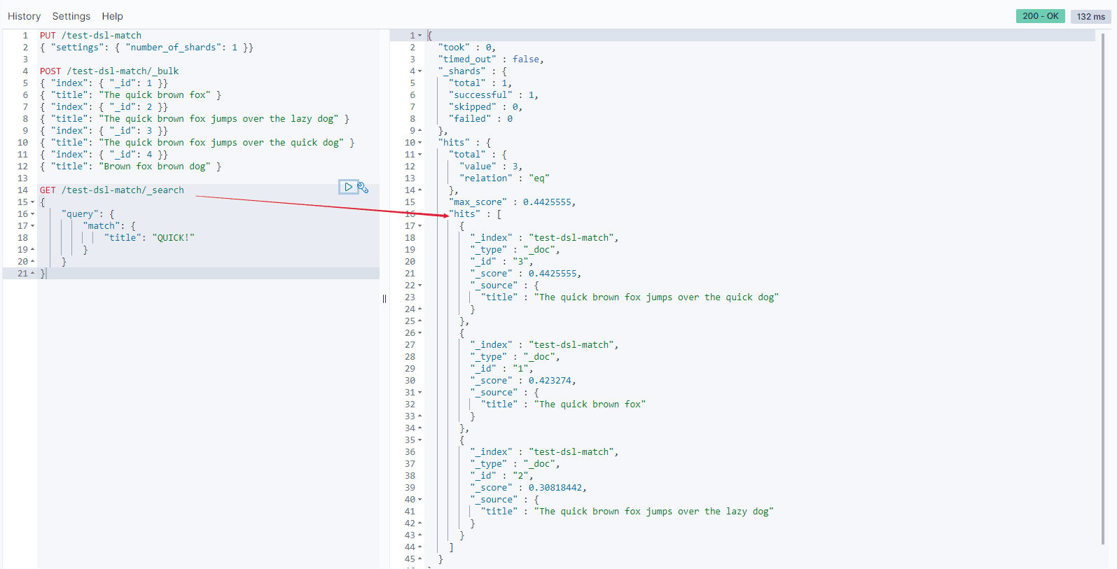 { "match": { "title": "quick" }},