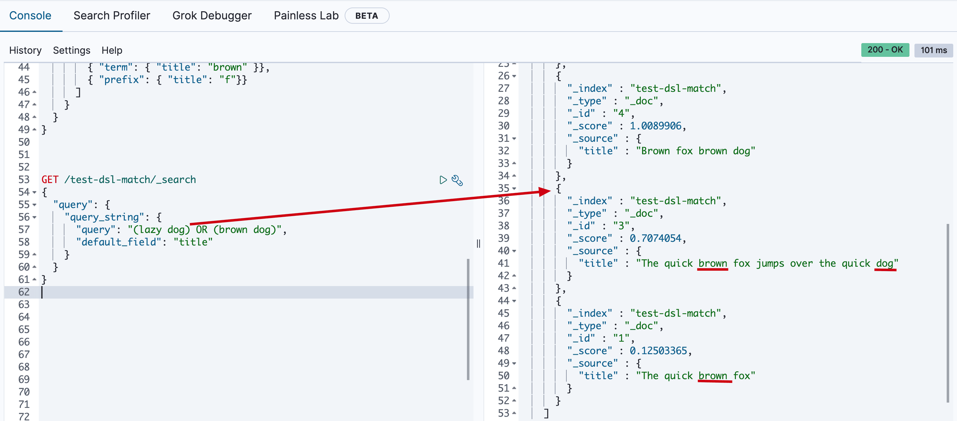 { "match": { "title": "brown" }},