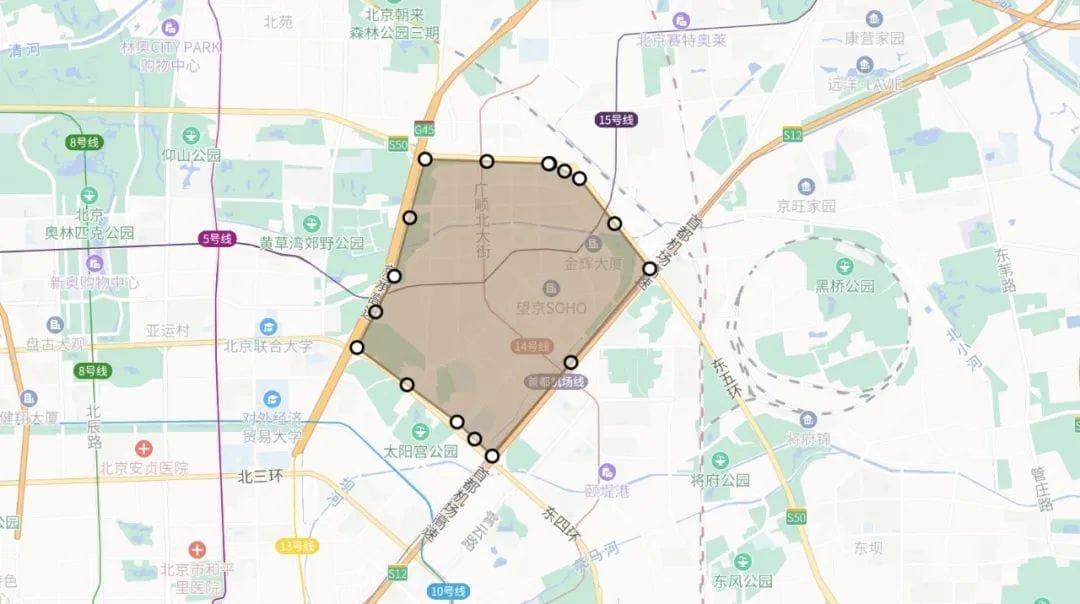 当前,外卖搜索业务检索引擎主要为 Elasticsearch,其业务特点是具有较强的 Location Based Service(LBS) 依赖,即用户所能点餐的商家,是由商家配送范围决定的。对于每一个商家的配送范围,大多采用多组电子围栏进行配送距离的圈定,一个商家存在多组电子围栏,并且随着业务的变化会动态选择不同的配送范围,电子围栏示意图如下:
