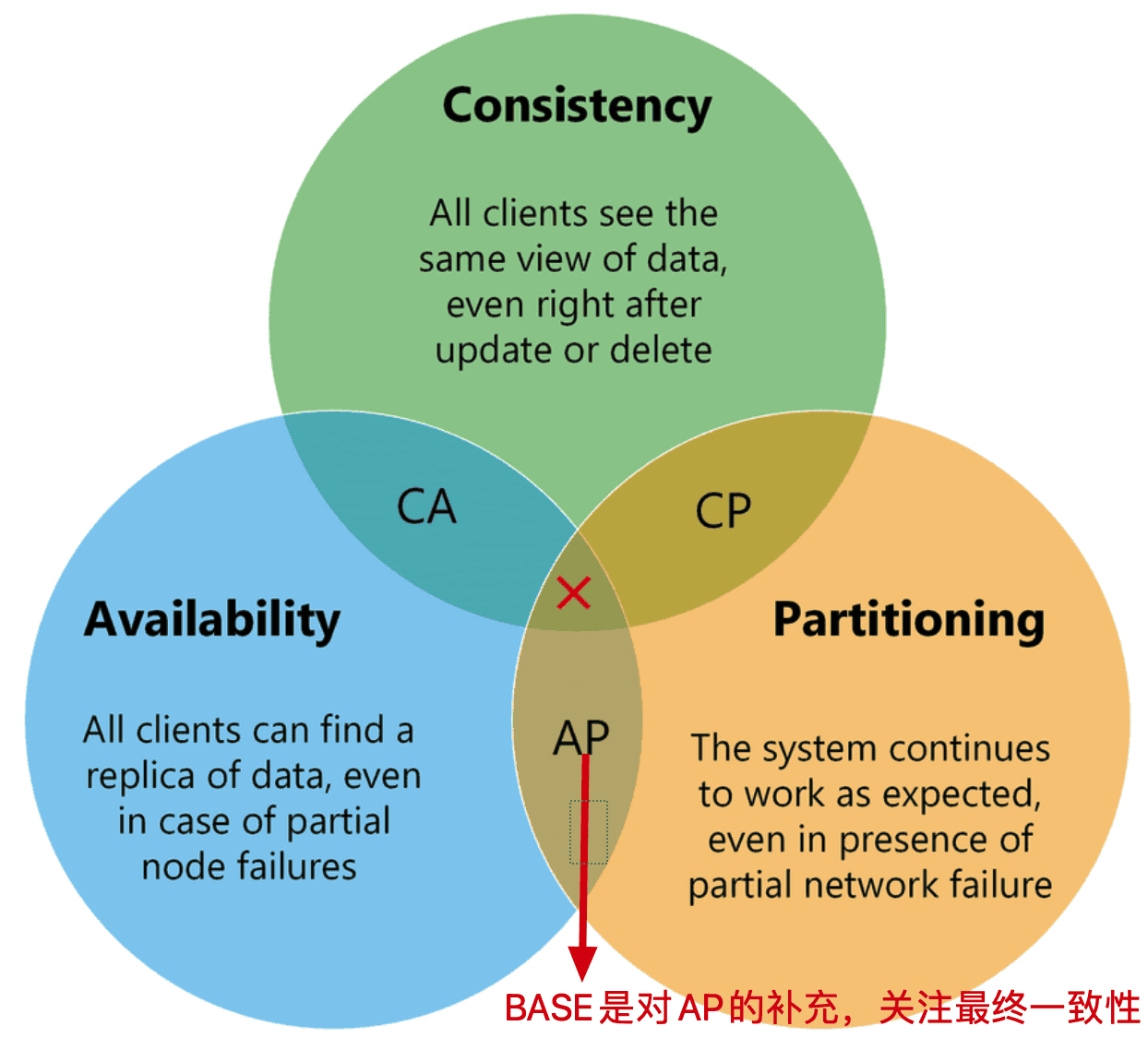 eBay 的架构师 Dan Pritchett 源于对大规模分布式系统的实践总结,在 ACM 上发表文章提出 BASE 理论,BASE 理论是对 CAP 理论的延伸,核心思想是即使无法做到强一致性(Strong Consistency,CAP 的一致性就是强一致性),但应用可以采用适合的方式达到最终一致性(Eventual Consitency)。