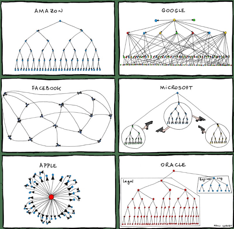 所以,一个大的组织因为沟通成本/管理问题,总为被拆分成一个个小团队。