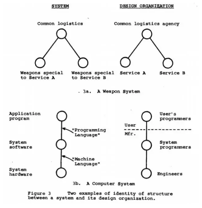 中文直译大概的意思就是:设计系统的组织,其产生的设计等同于组织之内、组织之间的沟通结构。
