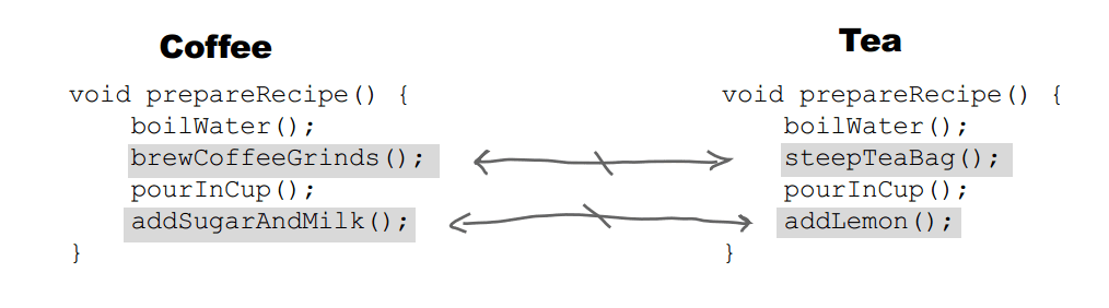 冲咖啡和冲茶都有类似的流程,但是某些步骤会有点不一样,要求复用那些相同步骤的代码。