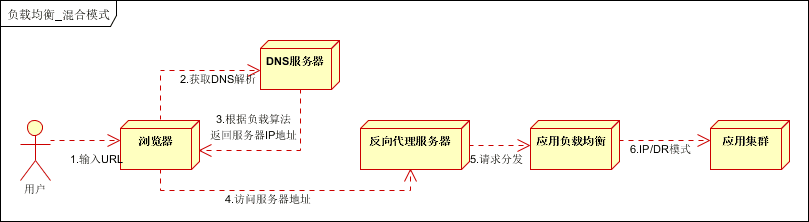 将DNS作为第一级负载均衡,A记录对应着内部负载均衡的IP地址,通过内部负载均衡将请求分发到真实的Web服务器上。一般用于互联网公司,复杂的业务系统不合适使用。如下图: