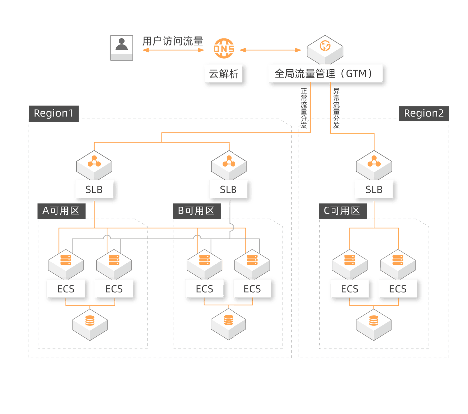 异地容灾 是指应用服务部署在不同地域时,当其中一地出现故障时,系统可以将出现故障地域的用户访问流量,调度至异地灾备中心,保障用户访问连续不间断。