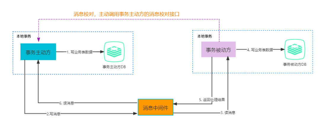 最大努力通知 :最大努力通知也称为定期校对,是对MQ事务方案的进一步优化。它在事务主动方增加了消息校对的接口,如果事务被动方没有接收到消息,此时可以调用事务主动方提供的消息校对的接口主动获取。