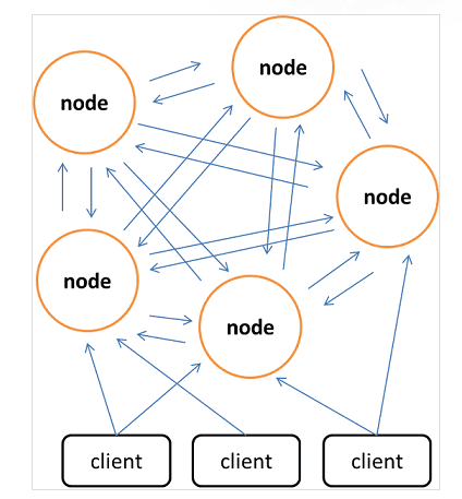 与memcached客户端支持分布式方案不同,Redis更倾向于在服务端构建分布式存储,如图10、11。