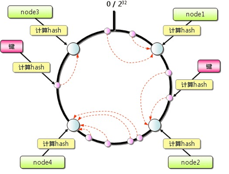memcached客户端采用一致性hash算法作为路由策略,如图7,相对于一般hash(如简单取模)的算法,一致性hash算法除了计算key的hash值外,还会计算每个server对应的hash值,然后将这些hash值映射到一个有限的值域上(比如0~2^32)。通过寻找hash值大于hash(key)的最小server作为存储该key数据的目标server。如果找不到,则直接把具有最小hash值的server作为目标server。同时,一定程度上,解决了扩容问题,增加或删除单个节点,对于整个集群来说,不会有大的影响。最近版本,增加了虚拟节点的设计,进一步提升了可用性。