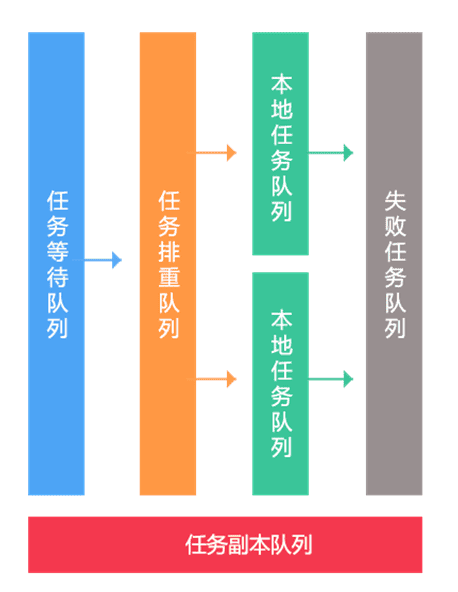 3、任务多队列化,等待队列、排重队列、本地执行队列、失败队列;