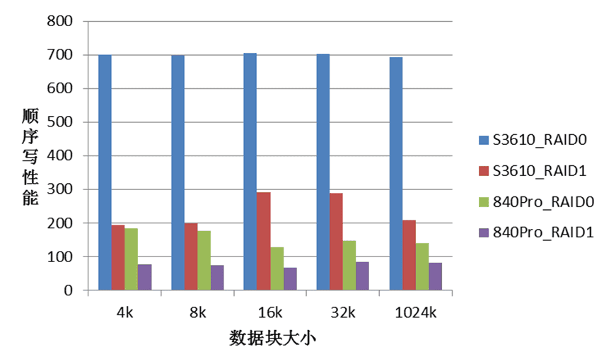 使用SSD做KV存储时发现磁盘IO非常低。配置成RAID10的性能只有36MB/s;配置成RAID0的性能有130MB/s,系统中没有发现CPU,MEM,中断等瓶颈。一台服务器从RAID1改成RAID0后,性能只有~60MB/s。这说明我们用的SSD盘性能不稳定。