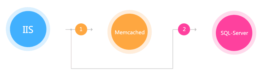 IIS+C#+Sql Server,最原始的架构,直接调用商品库获取相应的数据,扛不住时加了一层memcached来缓存数据。这种方式经常受到依赖的服务不稳定而导致的性能抖动。