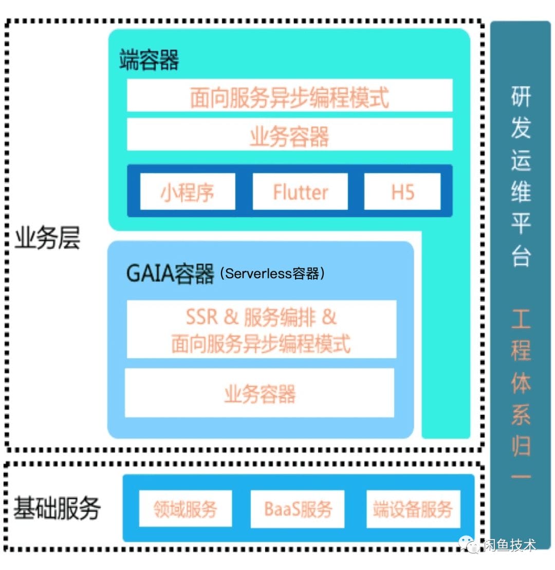 此时我们选择统一技术栈Dart,通过FaaS无服务器能力建设,采用Flutter+FaaS(Dart Runtime)云端一体的研发模式,让客户端同学来写服务端胶水层代码,同时还无需关心传统服务端运维、扩容等工作。原有的业务聚合、渲染协议解析,由客户端同学在Server完成,实现逻辑归一,完成端到端的研发闭环,实现资源配置的优化。