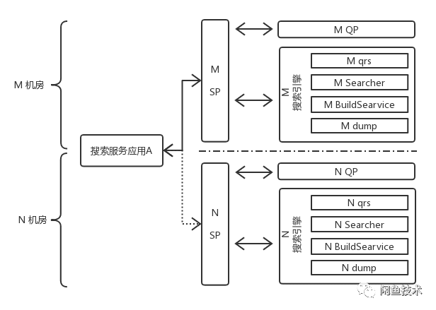 两个离线DUMP机房采用相同的引擎配置和相同的数据源,产出相同的索引数据,分别供两个在线机房使用,两个机房的在线流量比例也可以按需实时调整;当M机房出现不可逆问题时,自动或手动将流量全部切换到N机房,实现线上快速止血,然后再按部就班排查解决M机房的问题。