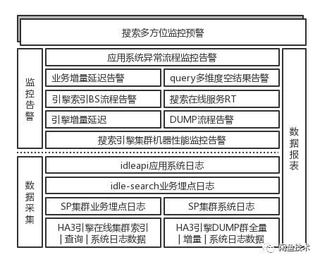 闲鱼搜索引擎在线离线流程/各上游重要应用系统的核心链路上,建立了完备的日志数据采集模块,对关键指标进行了精准的监控预警设置;做到任何问题都能及时被感知到。下图是搜索服务相应核心日志以及监控告警情况。