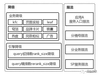 根据评估分析或经验,对搜索服务中潜在的或可能发生的突发事件的关键点,事先制定好应急处置方案;当满足一定的条件时进行多维度多层级的自动降级限流,或者配置手动预案进行人工干预;