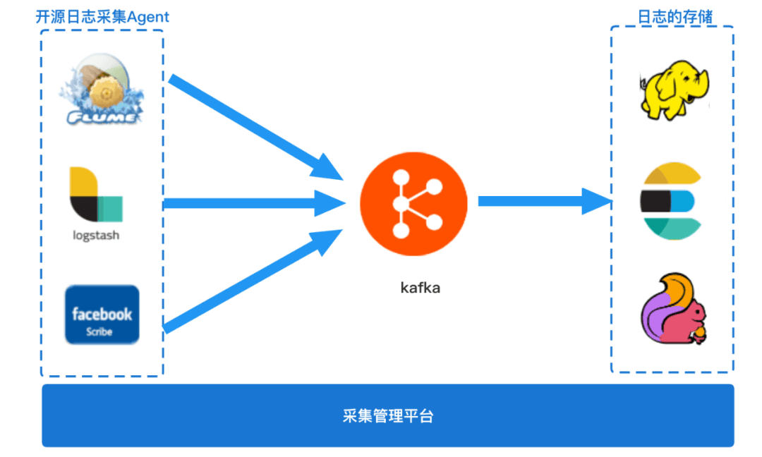 目前业界流行的日志采集Agent组件,开源的有Flume、Logstash、Scribe、FileBeats、Fluentd等,自研的有阿里的Logtail。它们都有不错的性能与稳定性,如果想要快速上手,可以不妨使用它们。但是一般大企业会有个性化的采集需求,比如采集任务大规模管理、采集限速、采集过滤等,还有采集任务平台化、任务可视化的需求,为了满足上面这些需求我们自研了一个日志采集Agent。