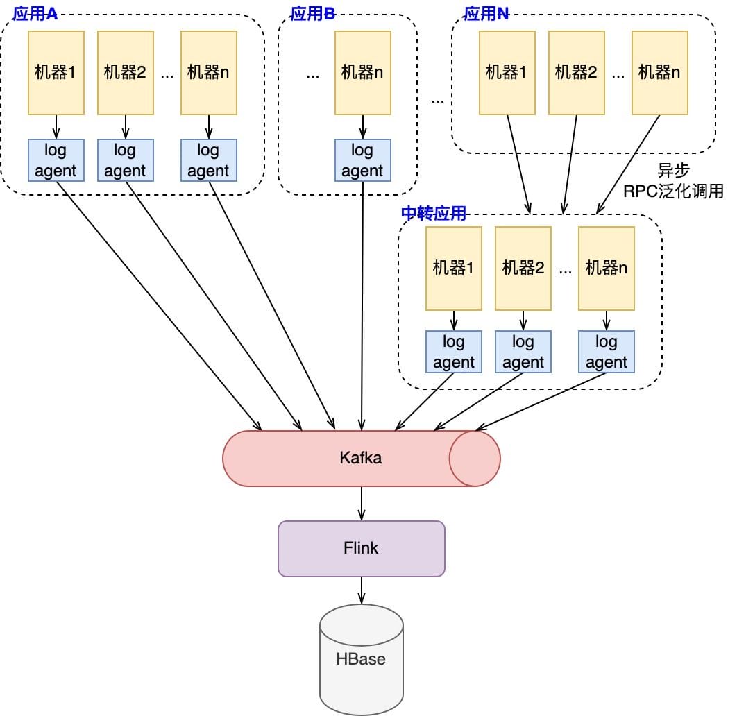 整体而言,log_agent + Kafka + Flink + HBase的日志上报和存储架构能够很好地支持复杂的业务系统,天然支持分布式场景下众多应用的日志上报,同时适用于高流量的数据写入。