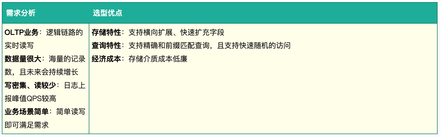 - 日志存储 :完成日志解析后,日志会按照树状的存储模型进行落地存储,结合存储的需求分析以及各个存储选项的特点,点评内容平台最终选择HBase作为存储选型。