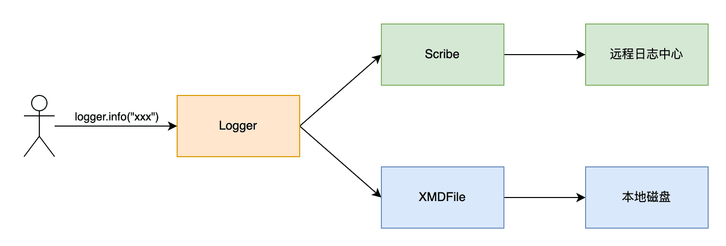 API网关服务Shepherd基于Java语言开发,使用业界大名鼎鼎的Apache Log4j2作为主要日志框架,同时使用美团内部的XMD-Log SDK和Scribe-Log SDK对日志内容进行处理,日志处理整体流程如下图1所示。业务打印日志时,日志框架基于Logger配置来决定把日志交给XMDFile处理还是Scribe处理。其中,XMDFile是XMD-Log内部提供的日志Appender名称,负责输出日志到本地磁盘,Scribe是Scribe-Log内部提供的日志Appender名称,负责上报日志到远程日志中心。